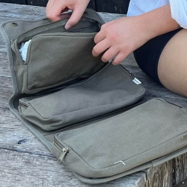Seed & Sprout makes it easy to keep your toiletries organised with their organic cotton hanging travel bag. With multiple compartments big and small for everything from bottles to eyeliners, travel sustainably in style.